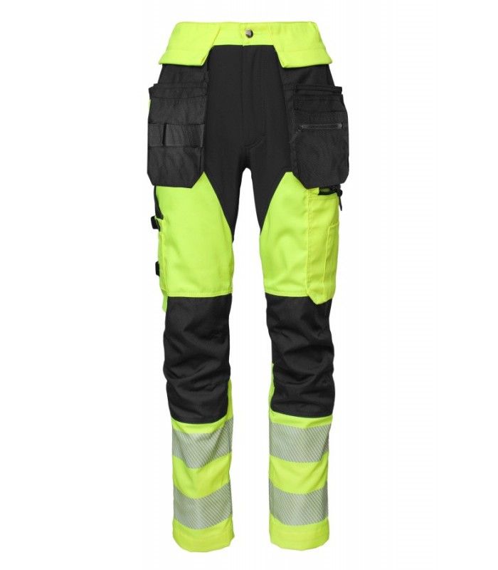 Kõrgnähtavad ripptaskutega tööpüksid BoSafety Mashup kollane/must