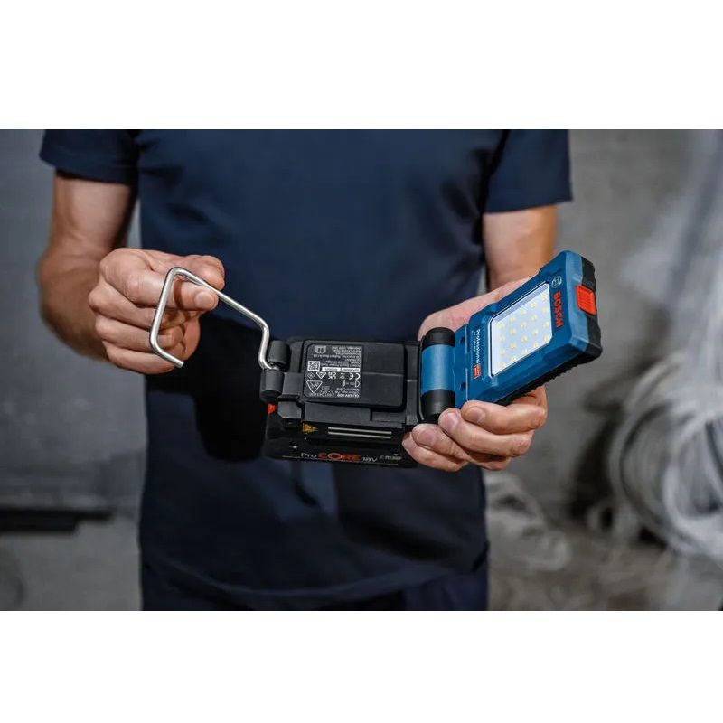 LED akulamp Bosch GLI 18V-800 on võimas ja robustne. Magneti ja riputuskonksuga kompaktne akulamp.