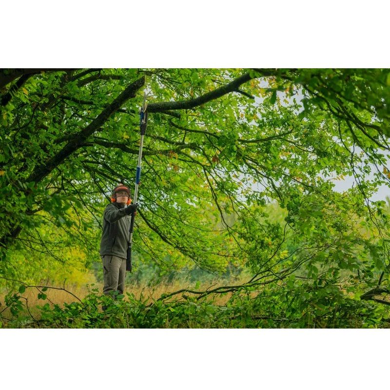 Teleskoop akuoksasaag Bosch GKE 18V-15 Professional lõikab tänu 2,9 m teleskoopvarrele vaevata kõrgeid oksi.