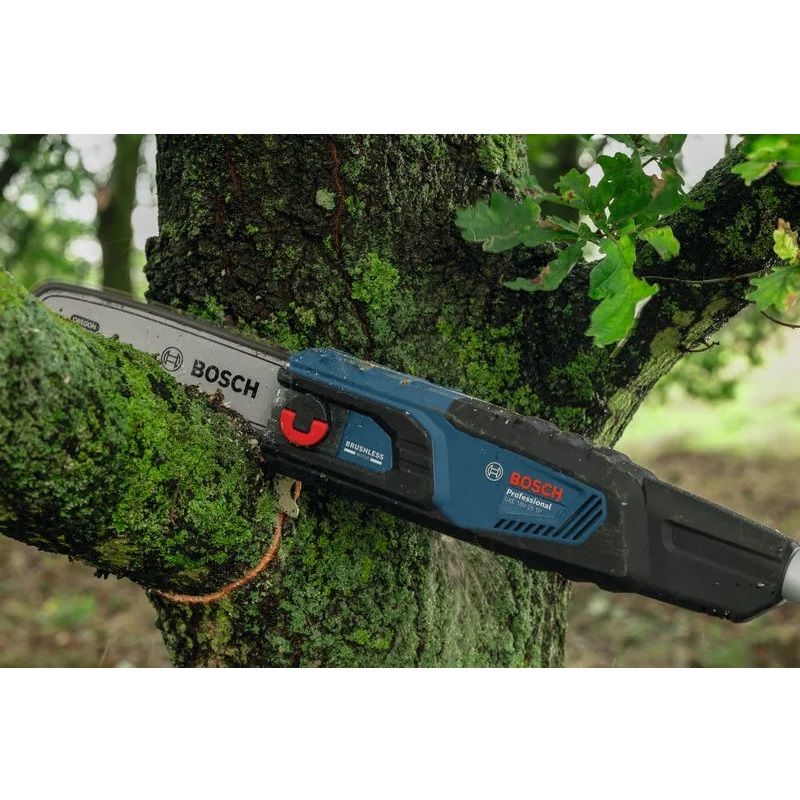 18 V 5,5 Ah ProCORE akuga töötab seade ühe laadimisega kuni 130 lõiget ja selle müratase on üsna madal. Sellel on kvaliteetne 0,325 sammuga Oregon kett ja 25 cm juhtplaat täpseks pügamiseks. Tööriista esiküljel olev oksakonks võimaldab tihedate alade hõlpsat harvendamist. See ei tekita heitgaase ja tööriista saab transportimiseks kaheks osaks jagada. Ühildub Bosch Professional 18V süsteemi ja kaubamärkideülese AMPShare akupaketiga.